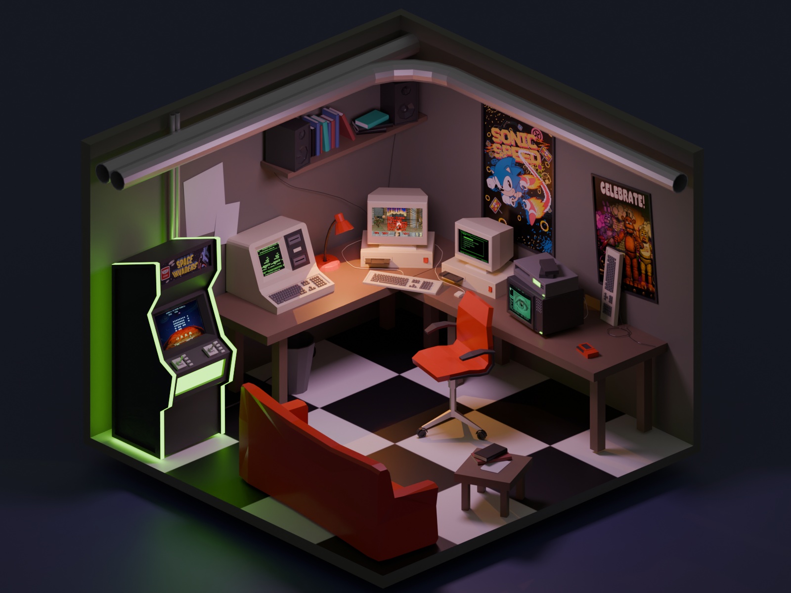 Découvrez plusieurs créations en perspective isométrique que j’ai faites par passion et non pour des projets en particulier, en suivant plusieurs guides de POLYGON RUNWAY qui est un un service en ligne et sur les réseaux qui apprend plusieurs guides en illustration 3D sur Blender pour créer son environnement, les décors avec une texture très précise et détaillée à travers des projets complet, J’appercie énormement les tutos proposés et j’ai pu faire des rendu trés atrayant