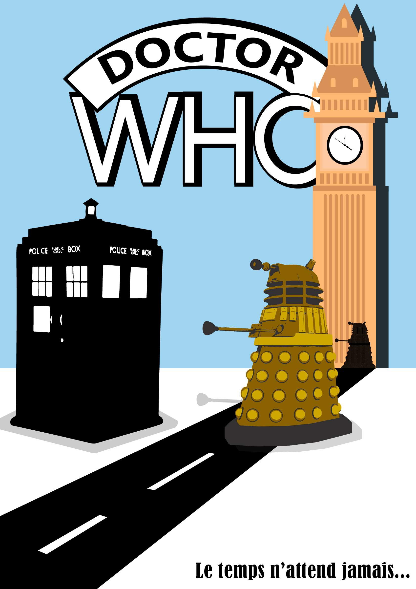 Dans ce projet, je devais concevoir une affiche de cinéma en réalisant un vrai travail de recherche graphique, notamment sur la mise en forme et la typographie. Je me suis inspiré d’illustrations de films célèbres réalisées en images vectorielles, avec un style épuré, des formes nettes et une composition structurée. J’ai analysé différentes affiches alternatives pour comprendre comment simplifier une image tout en conservant une identité forte. J’ai ensuite conçu une affiche inspirée de l’univers de Doctor Who, en optant pour une palette de couleurs limitée afin de créer une ambiance visuelle cohérente, mystérieuse et percutante. Le travail typographique a également été réfléchi pour s’intégrer harmonieusement à l’illustration et renforcer l’impact global de l’affiche.