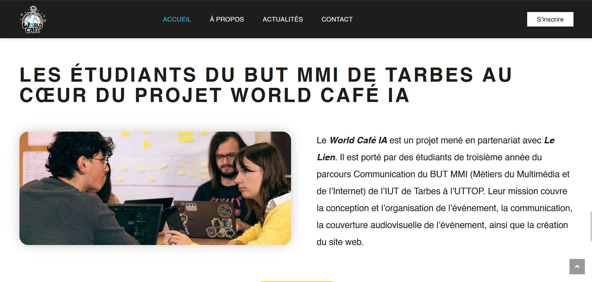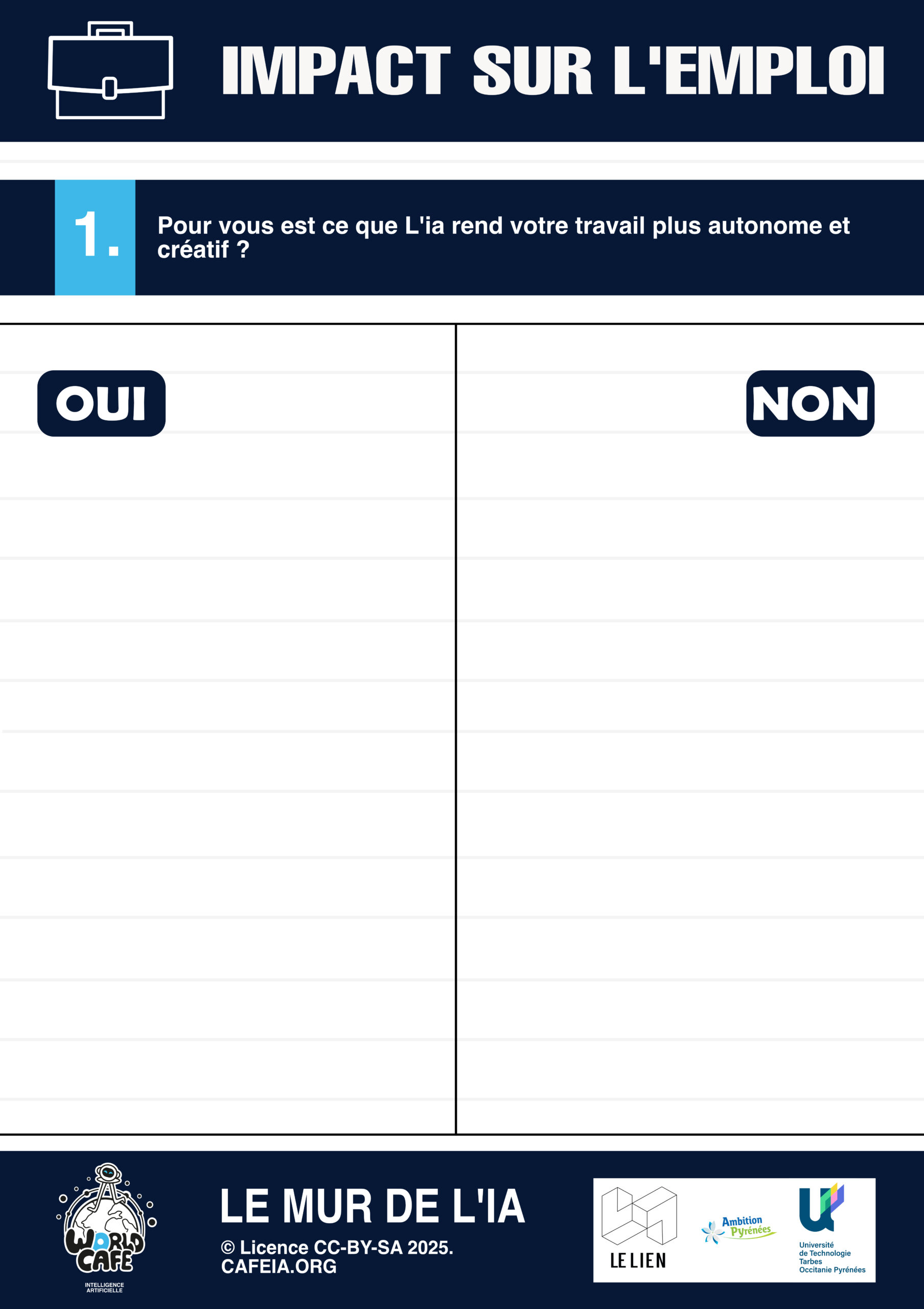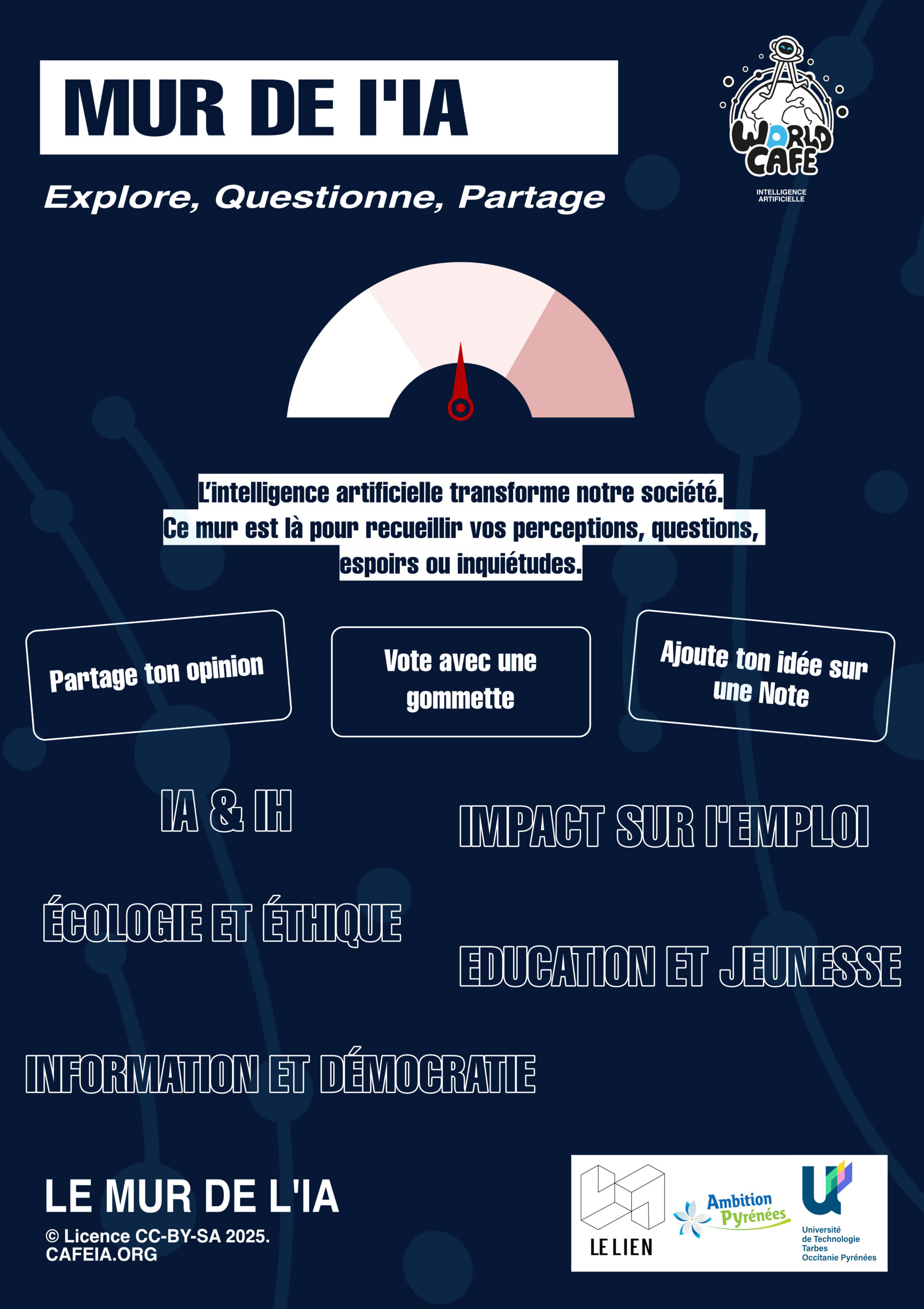 Au cours de l’année 2025, en parcours Communication en MMI, j’ai participé à l’organisation d’un événement d’échange de type World Café au Lien à Ibos. Cet événement s’inscrit dans un processus créatif visant à faciliter le dialogue constructif ainsi que le partage de connaissances et d’idées, dans le but de créer un réseau d’échanges et d’actions. Le World Café reproduit l’ambiance conviviale d’un café, dans lequel les participants débattent d’un sujet en petits groupes autour de tables, favorisant ainsi l’écoute, la co-construction et la circulation des idées. Les échanges portaient principalement sur des thématiques liées à l’intelligence artificielle et à ses enjeux actuels.