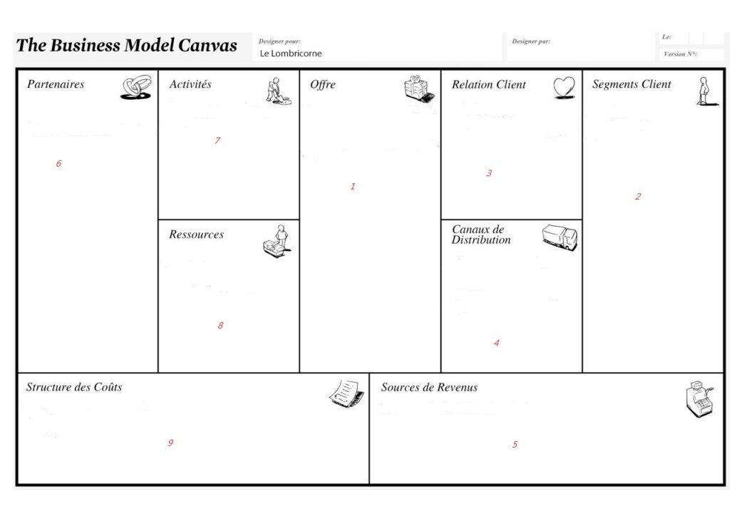 Pour commencer, nous avons rempli un Business Model Canvas, un outil qui permet de structurer une idée d’entreprise en identifiant les éléments essentiels du projet, comme les clients, la proposition de valeur ou encore les ressources nécessaires.
